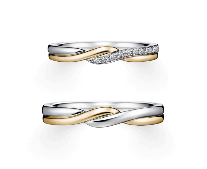 An elegant braid of platinum and yellow gold, the KAZAHAYABOSHI rings are a stunning nod to both strength and grace. The straight, layered silhouette offers a modern and durable profile, while the intertwining design symbolises two lives beautifully joined. Ideal for those who want a statement piece that still fits comfortably into everyday life.