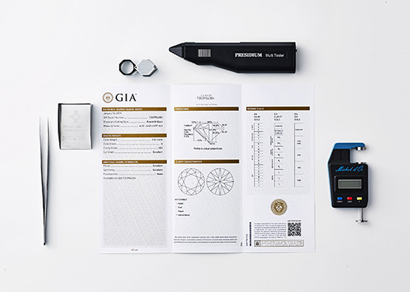 To achieve the perfect balance of brilliance, I-PRIMO oversees the diamond production process from the very beginning. Unlike the typical route of purchasing pre-cut diamonds, I-PRIMO collaborates with polishing factories to supervise the entire production process. I-PRIMO is the only brand capable of maintaining this high level of quality across all diamonds, both large and small, of 0.18ct and above, while supplying its numerous stores. We are deeply committed to the proportions that produce ideal brilliance, meticulously crafting diamonds that meet I-PRIMO’s strict standards for quality and radiance.