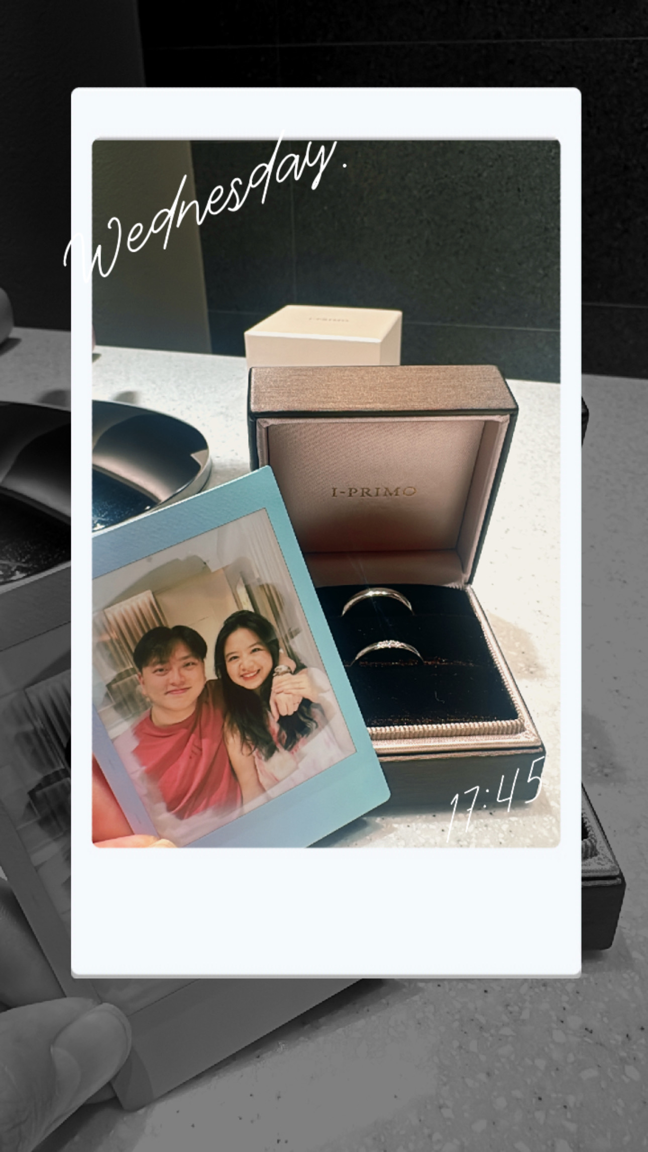 We wanted something simple, comfortable, and matching. We went to many luxury stores but couldn't find the perfect pair that felt right for both of us. We only visited Level 1 and above at ION, and we went home feeling a little disappointed. Then, by chance, we passed by I-PRIMO at B1 — and I decided to do more research about it. We booked an appointment, thinking we'd give it a try. Origin was so comfortable — just the style my husband had been looking for. But finding a matching pair that spoke to both of us had been our biggest headache... until I saw Laksh. It was love at first sight. Not too many diamonds, not too few — just simple, elegant, and most importantly, comfortable. That’s what we both cherish the most. The hidden diamond in the ring was an unexpected bonus. We kept it a surprise for each other and only revealed the meaning behind our chosen stones during our ring collection. I loved how Miyu helped us keep the secret and guided us through the whole process with care. We also got to customize our ring box — and we chose to engrave it with “Yes, I do.” Because I know... I will always say it to you, again and again